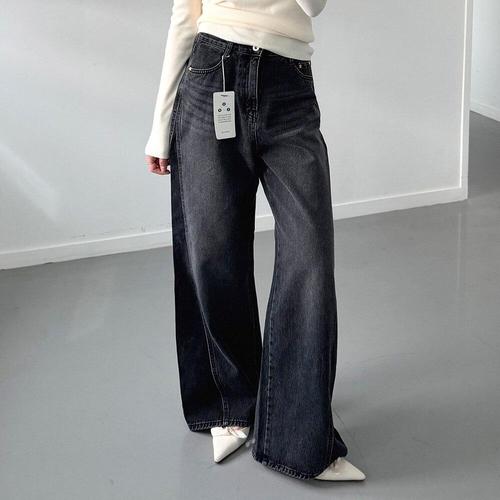 [다잇템]여자 논스판 롱 레직기 나팔 워싱와이드 청바지_4
