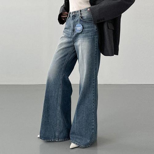 [다잇템_패션]여성 워싱 나팔 미니멀리즘 면혼방 데님팬츠