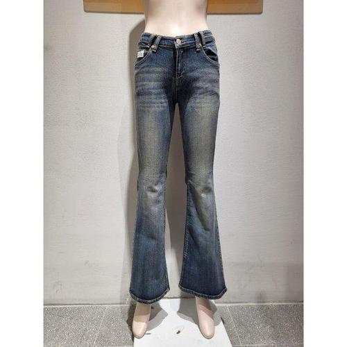 [LAB101] 밑단 트임 데미지워시 데님 팬츠 (MID BLUE)