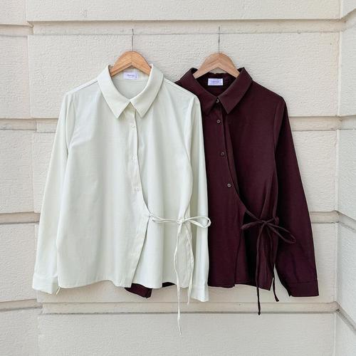 옷자락 / 여성 오버사이즈 랩 셔츠 언발 가을 출근룩 리본 박시