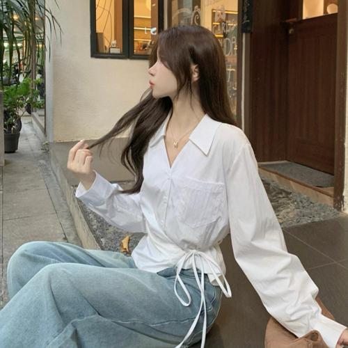 [옷자락]여성 오버사이즈 랩 셔츠 언발 가을 출근룩 리본 박시셔츠