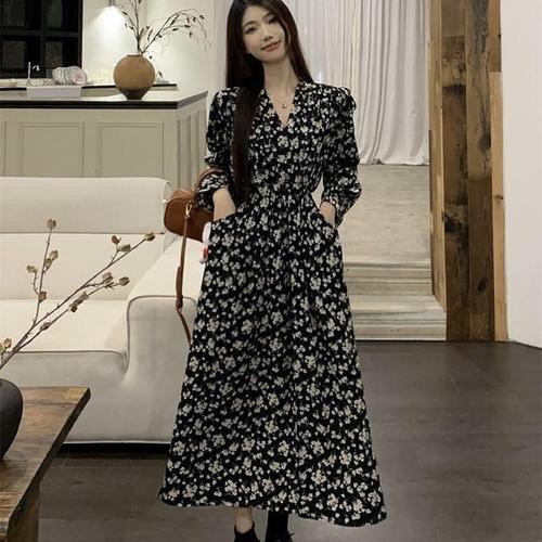 랩스타일 브이컷 시즌 꽃무늬드레스