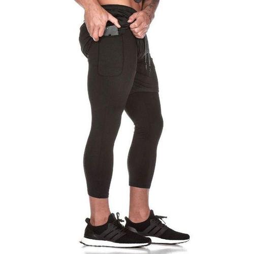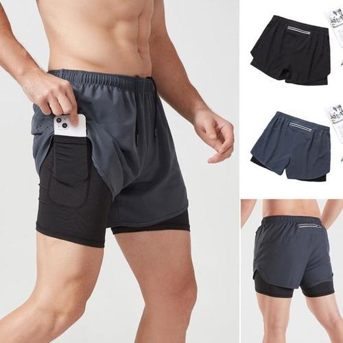 남자 운동 레깅스 팬츠 활동용 이중 레이어 기능성반바지 러닝쇼츠