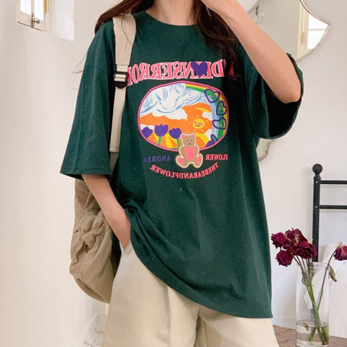 나야홍 / 빅사이즈 507 러블리꽃밭곰돌티셔츠 DLIU975