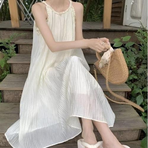 여자 러블리 리본 하트넥 나시 스모크밴딩 미니원피스
