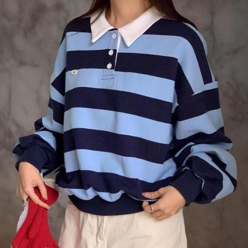 여자 겨울럭비티셔츠 단가라 박시 맨투맨