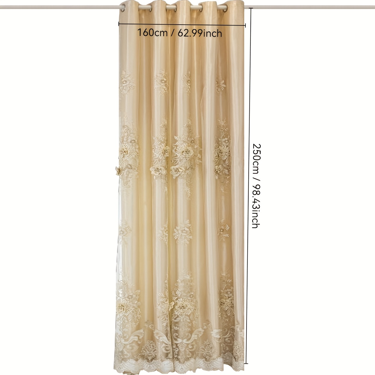 TEMU 1개 럭셔리 더블 레이어 자수 커튼 - 플로럴 자수, 100% 폴리에스터, 아이렛 탑 설치 용이, 세탁기 사용 가능, 거실/침실/사무실용, 클래식 스타일 자카드 폴리에스터, 내구성 있는 원단, 우아한 창문 드레이프, 인테리어 디자인용