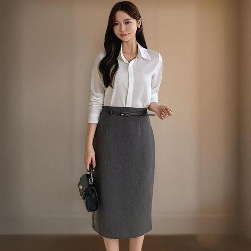 [신상오픈런]여성 하이웨이스트 슬림벨트 H라인 오피스 미디 스커트