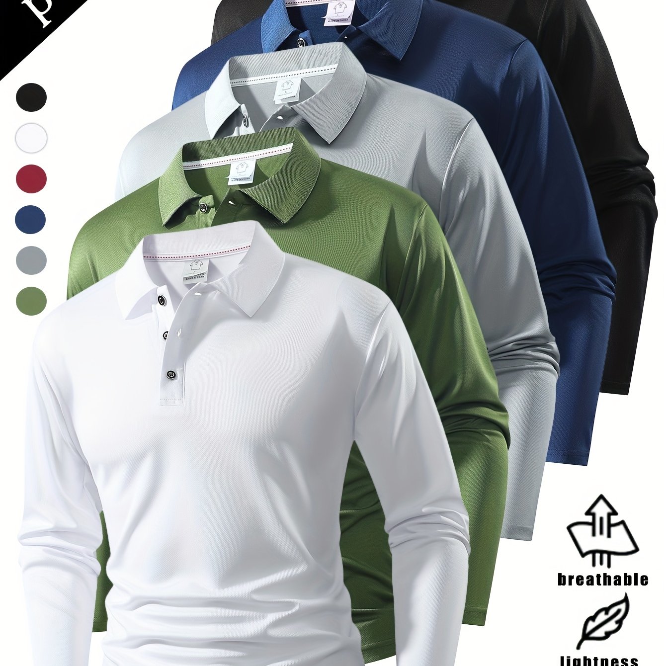 TEMU 봄가을 폭발적인 가치 5피스 칼라 긴팔 남성용 탑, 스타일리시하고 심플하며 다재다능, 단색 디자인, 다양한 색상 선택 가능, 스포츠와 캐주얼, 부드럽고 편안한 점퍼, 220g/㎡ 원단 무게
