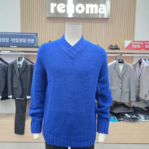[레노마 옴므]레노마 울혼방 변형 어깨선 니트 블루 RNEPKT02A