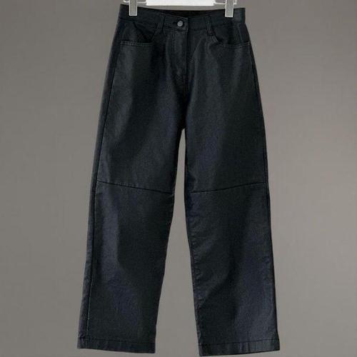 [미라클세븐]여성 스판 절개 세미와이드 코팅 가죽바지
