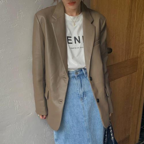 [다잇템_패션]여자 힙무드 빅사이즈 수트핏 주머니 가죽 자켓