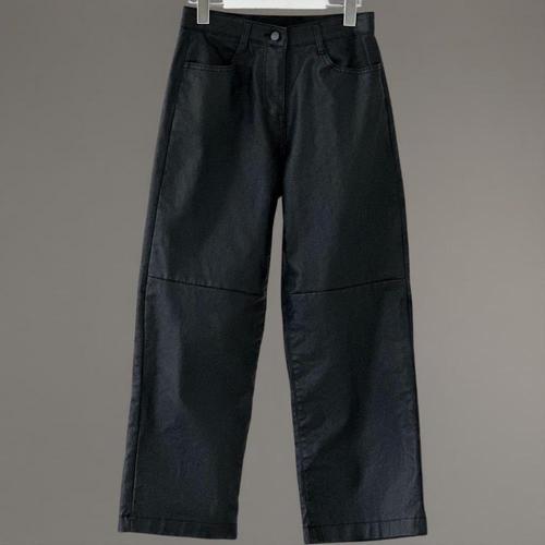 [신상오픈런]여성 스트레이트핏 가죽 바지 밴딩 포켓 와이드 팬츠