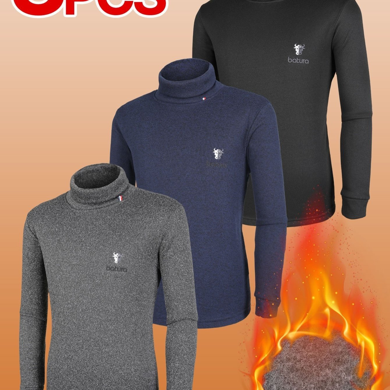 TEMU (1+1+1) 남성 하이넥 기모 목폴라 티셔츠 3PCS 겨울필수템(JH3QP3LT071M)