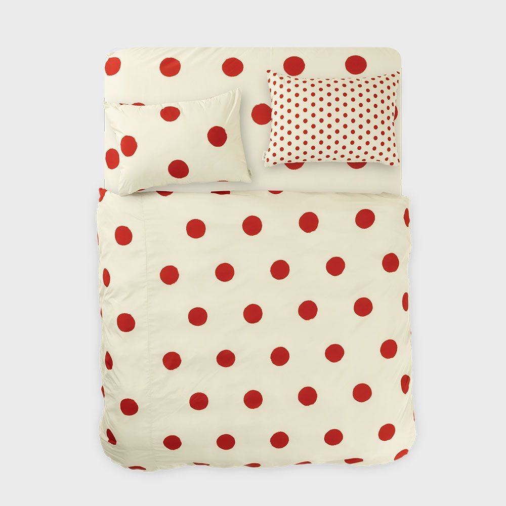 퍼 프리 모달 볼드 도트 이불 커버(SS/Q)_Red/Beige