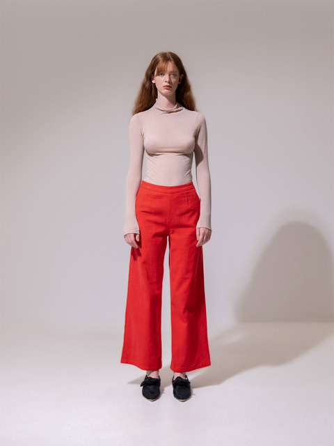 [에민앤폴] 레드 코듀로이 와이드 레그 트라우저