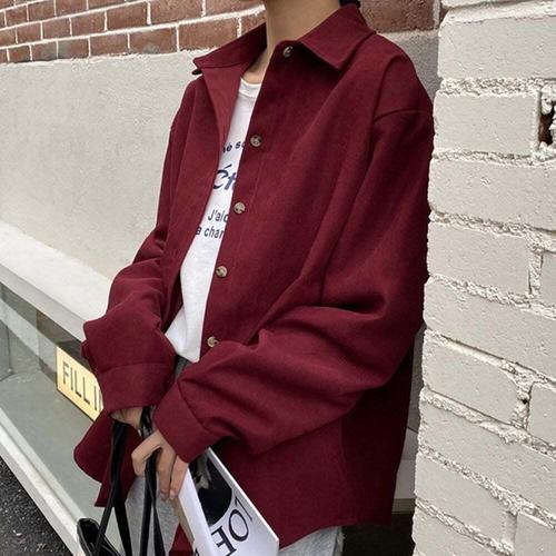 [셀럽하우스]여성 GVOH0829 골덴 긴팔 셔츠 레드 기본 카라 가벼운 아우터