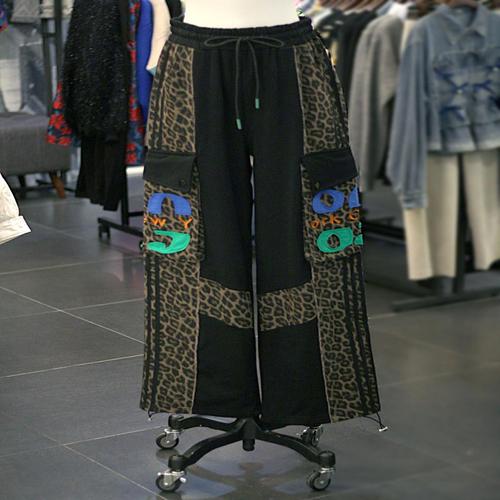 [르니앤맥코이]레오파드 포인트 밑단 스트링 와이드 팬츠 AZMN03SL401FJY-1A