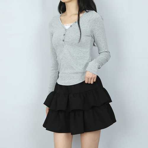 파라노말샵 / 3색 레이스 레이어드 슬림 굴링 긴팔 티셔츠 (파라노