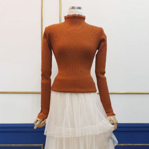 레이어드 레이스 나시목티 이너 프릴블라우스 목폴라