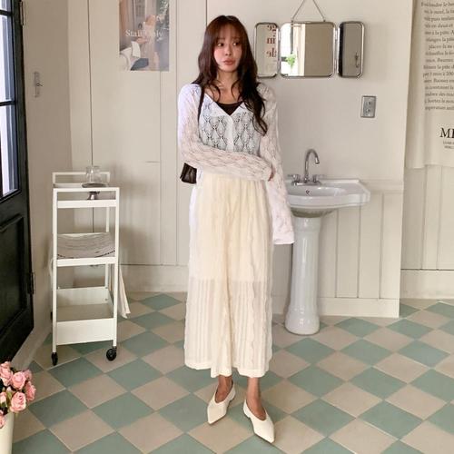 샵앤) 국산 여성 뒷밴딩 옆트임 레이스 여름 펀칭 롱 스커트 STJ-WSK-4609-베이지