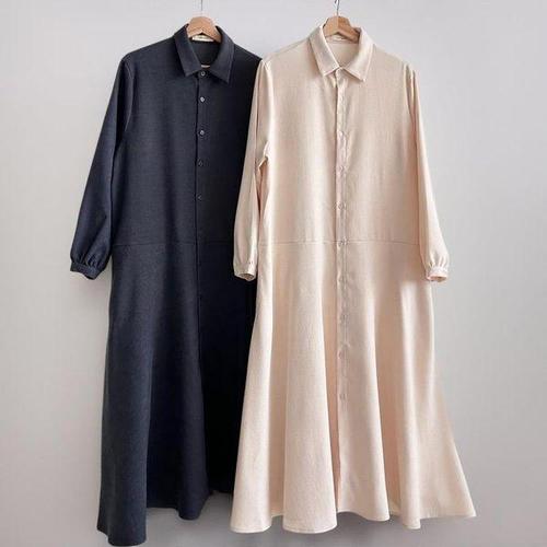 [신상오픈런]여성 가을 하객 스타일 박시 플레어 롱셔츠 원피스
