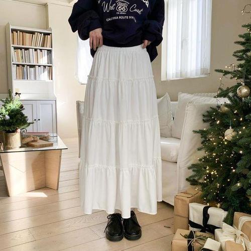 [다잇템]여성 프릴 클래식 층진 시즌리스 롱스커트
