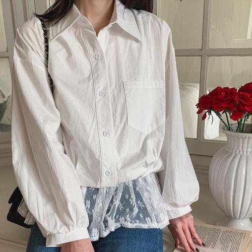 [신상오픈런]여성 루즈핏 면 레이스 밑단 레이어드 카라 블라우스