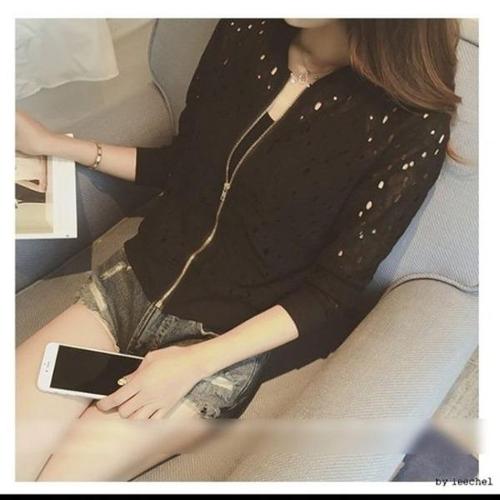 프리티글라라 여성용 레이스 점퍼 여름 펀칭 짚업 후드 자켓 bz-02