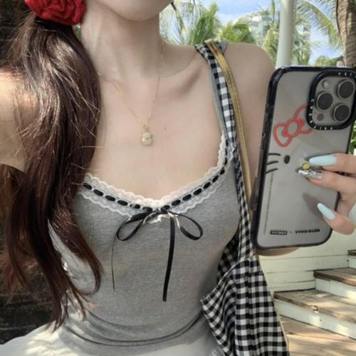 [다잇템_패션]여성 캡내장 골지 SS 레이스 리본 나시티