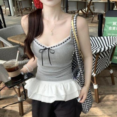 [옷자락] 여자 여름 레이어드 비스코스 프릴 레이스 나시티