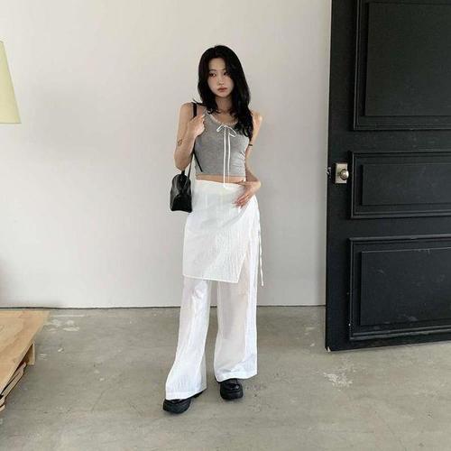 레이스 끈나시 와이드 데일리 레이어드 민소매 나시티