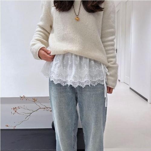 여성 러블리 레이어드 코디템 데일리룩 리본 시스루 레이스 랩 스커트 레깅스스커트