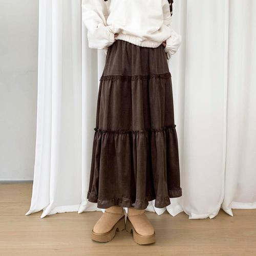 삐삐언니 여자 키작녀 쉬폰 스커트 추동 레이스 A라인 롱 꾹4