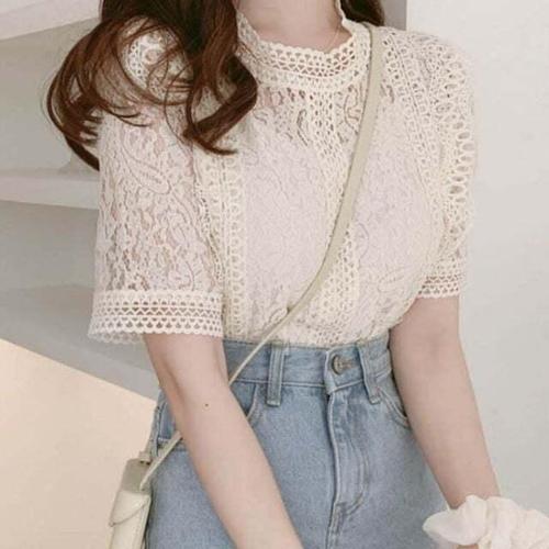 [셀럽하우스]여성 CGRC4397 레이스 반목 퍼프소매 시스루 블라우스 청순