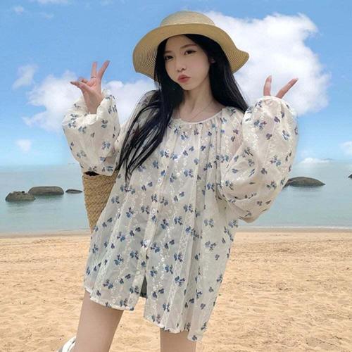 [셀럽하우스]퍼프 EXFG8912 레이스 시스루 청순 블라우스