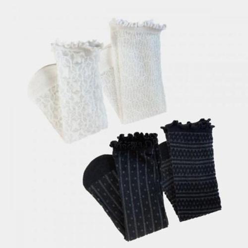더시럽 여성용 발등 덮는 레이스 메쉬 테리 바닥 페이크삭스 2켤레