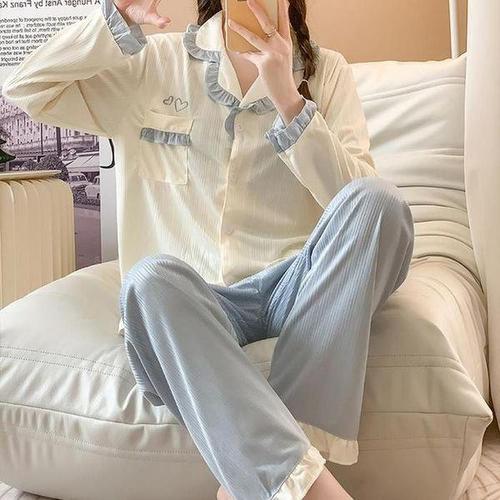 [셀러허브_여성트랜드패션]ONM 레이스 파자마세트 모메인 긴팔 잠옷 홈웨어 여성