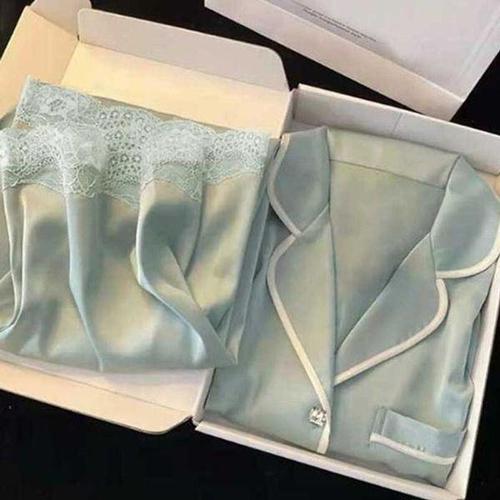 [셀러허브_여성트랜드패션]ONM 넥리본 파자마세트 여성 잠옷 레이스 간절기 봄