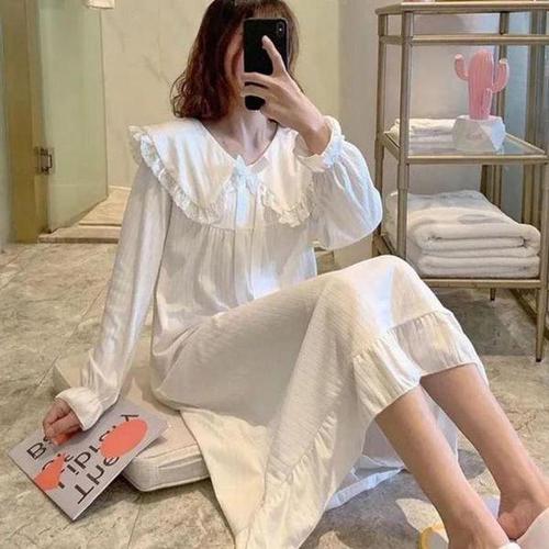 프릴 레이스 원피스 잠옷 긴팔 봄 면 빅사이즈 공주 잠옷 파자마 홈웨어