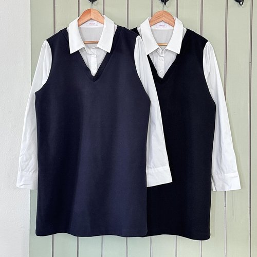 VANANA2 일체형셔츠 레이어드 배색 카라 원피스