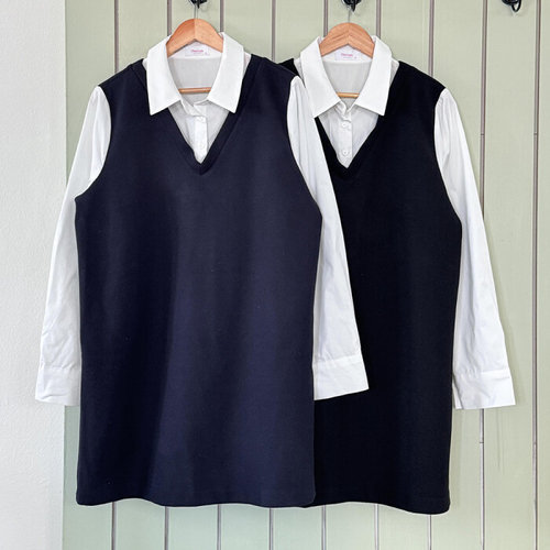 [하프클럽/]빅사이즈 512 카라셔츠레이어드원피스 DBSV927