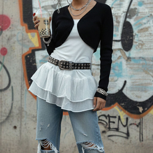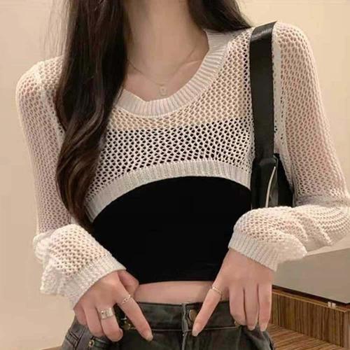 [셀럽하우스]레이어드룩 SZJZ5988 크롭 나시 소재 긴팔 티셔츠