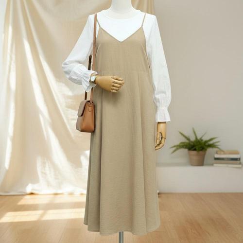 여성레이어드원피스 3컬러 1P 여자 끈나시 슬리브