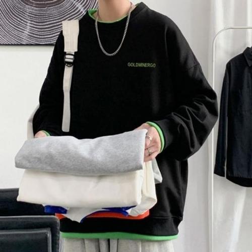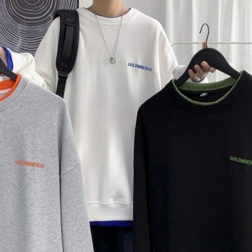 [셀러허브_여성트랜드패션]남자 맨투맨 가을티 남성 후드티 페이크 레이어드 남성빅 라운드넥 스타일 티..