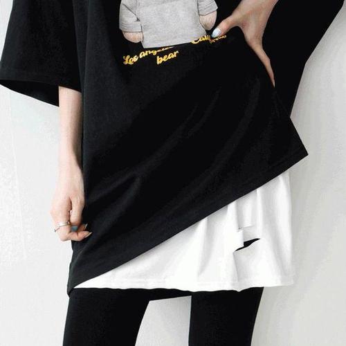 [허리23~34] 맨투맨필수템/빅사이즈/옆트임 스커트 페이크/레이어드티/허리밴딩/반팔티/반팔레이어드/후드/페이크
