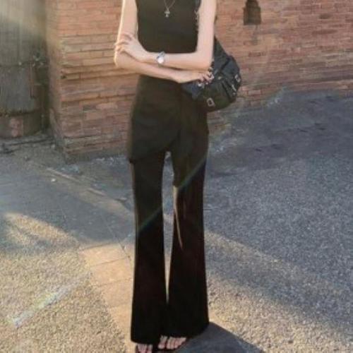 [옷자락]여성용 레이어드 랩 부츠컷 밴딩 스커트 팬츠