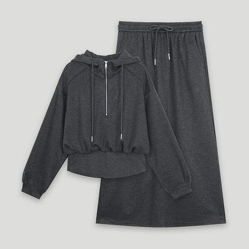 [쉬즈미]여성 기모 레이어드 롱치마 트레이닝세트 (TRS-613)