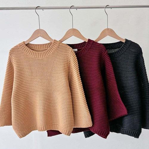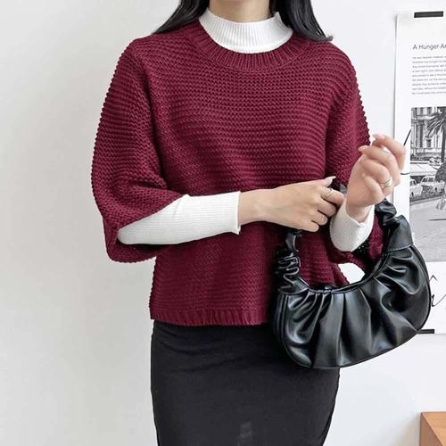 [엄지척]여성 라운드넥 7부 와플니트스웨터 가오리핏 레이어드_19680001_667501