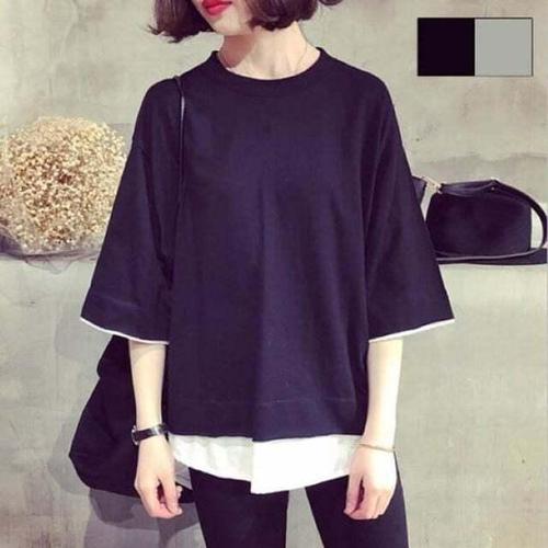 [셀럽하우스]LED-261 EAXL8550 레이어드 무지 7부 티셔츠